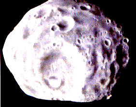 1877 entdeckte A. Hall mit einem neuen Refraktor des Washingtoner Observatoriums (Durchmesser des Objekts 65 cm) zwei kleine Marsmonde. Sie erhielten die Namen Phobos - Furcht - und Deimos - Schrecken - nach dem Mythologischen Begleitern des Kriegsgottes. Fast 100 Jahre lang waren sie nur als schwache Lichtpünktchen bekannt, über ihr tatsächliches Aussehen wusste man nichts Bestimmtes. Es tauchte sogar die phantastische Vorstellung auf , die beiden Monde wären hohl und künstlicher Herkunft. Erst die Raumsonden Mariner 9 (1971) und Viking 1 und 2 (1976/1977) verschafften Klarheit.