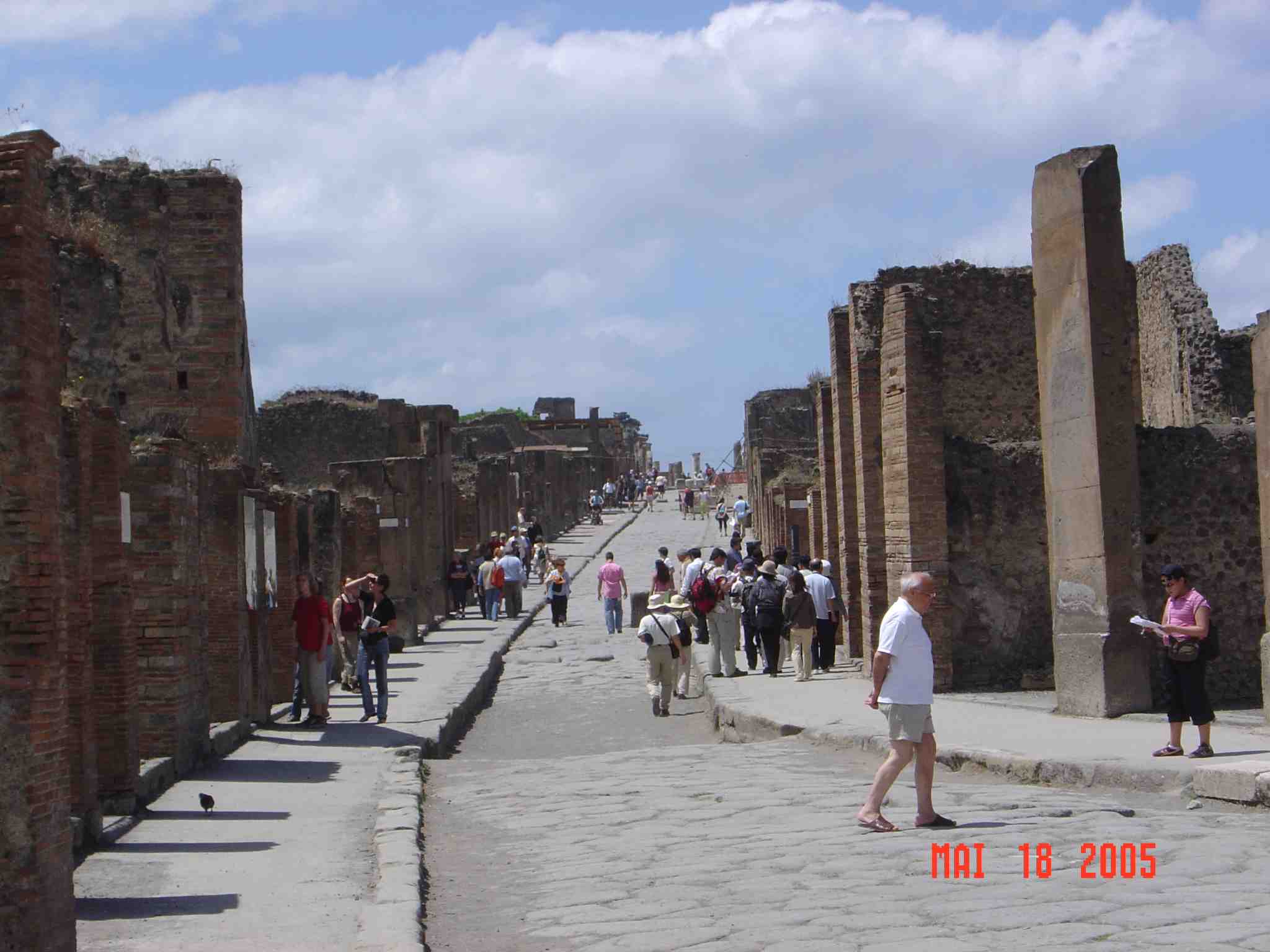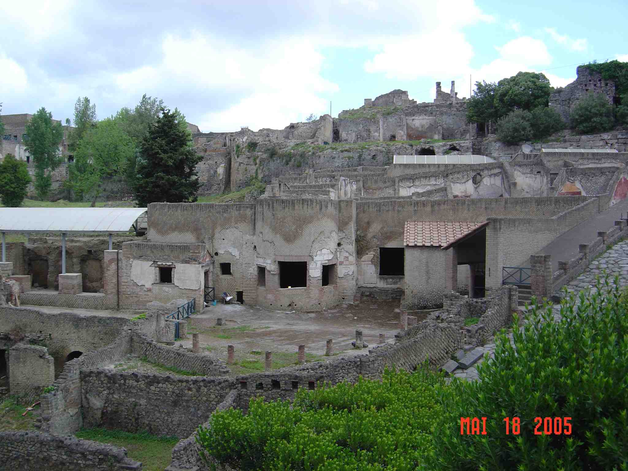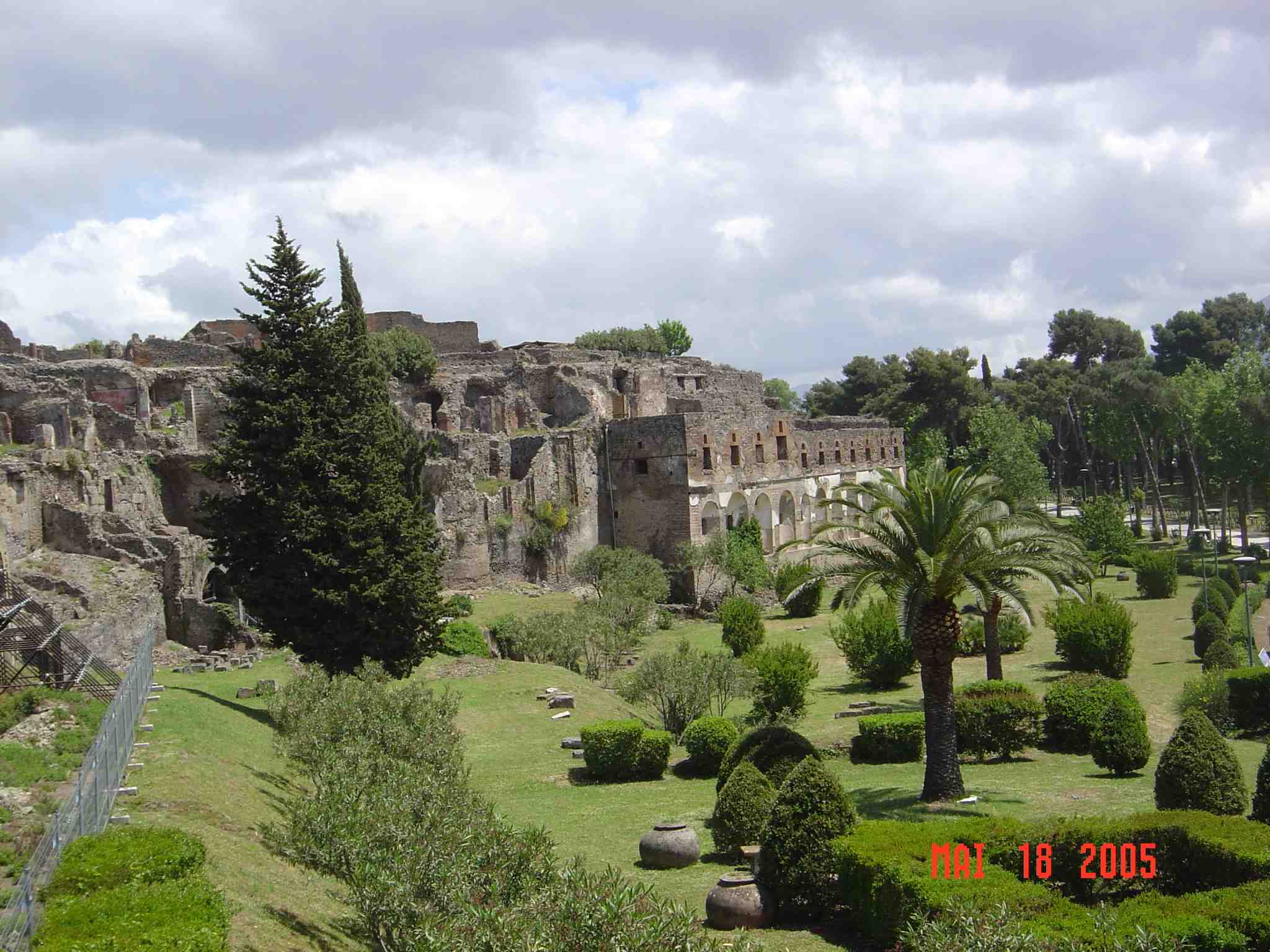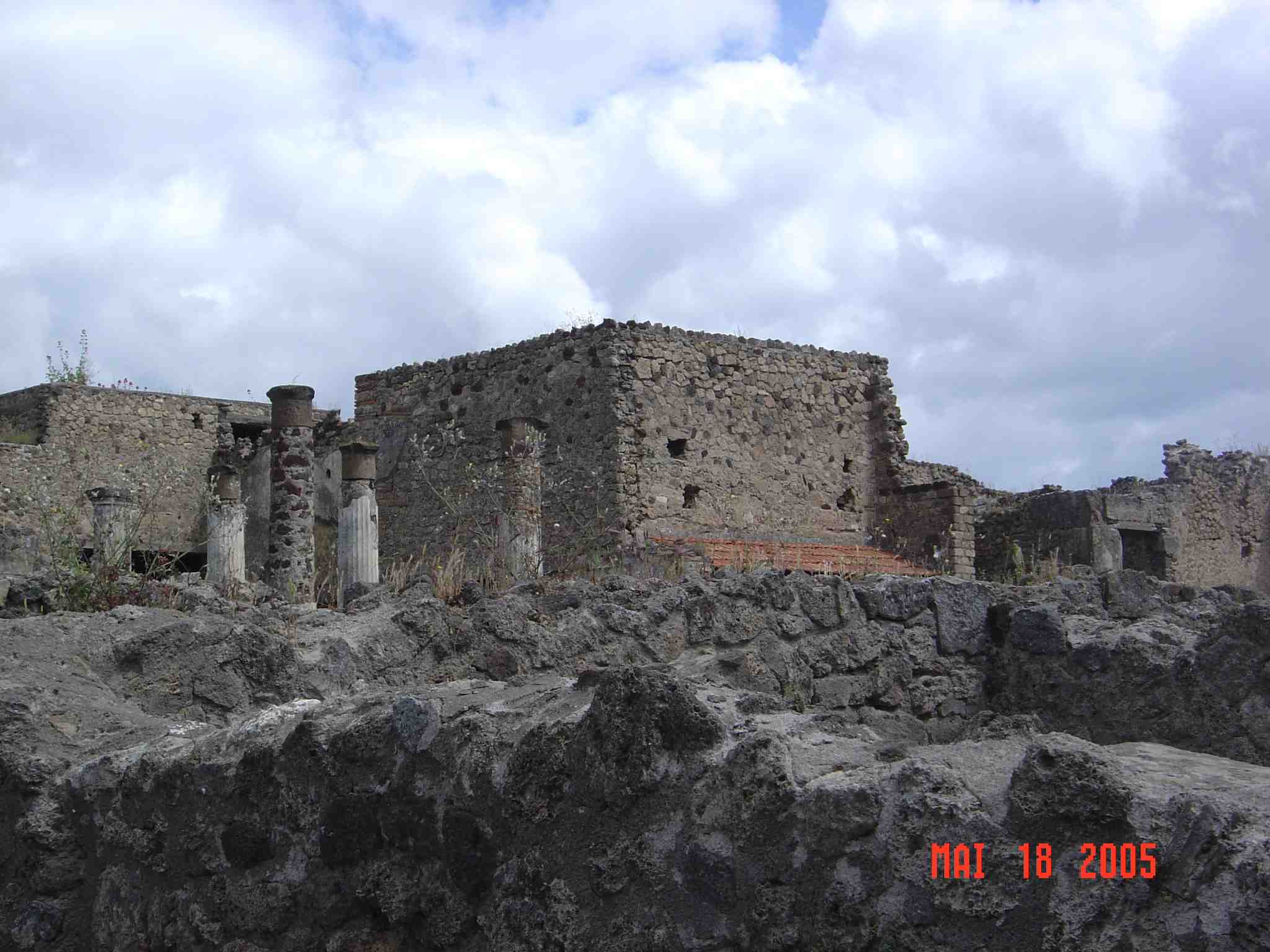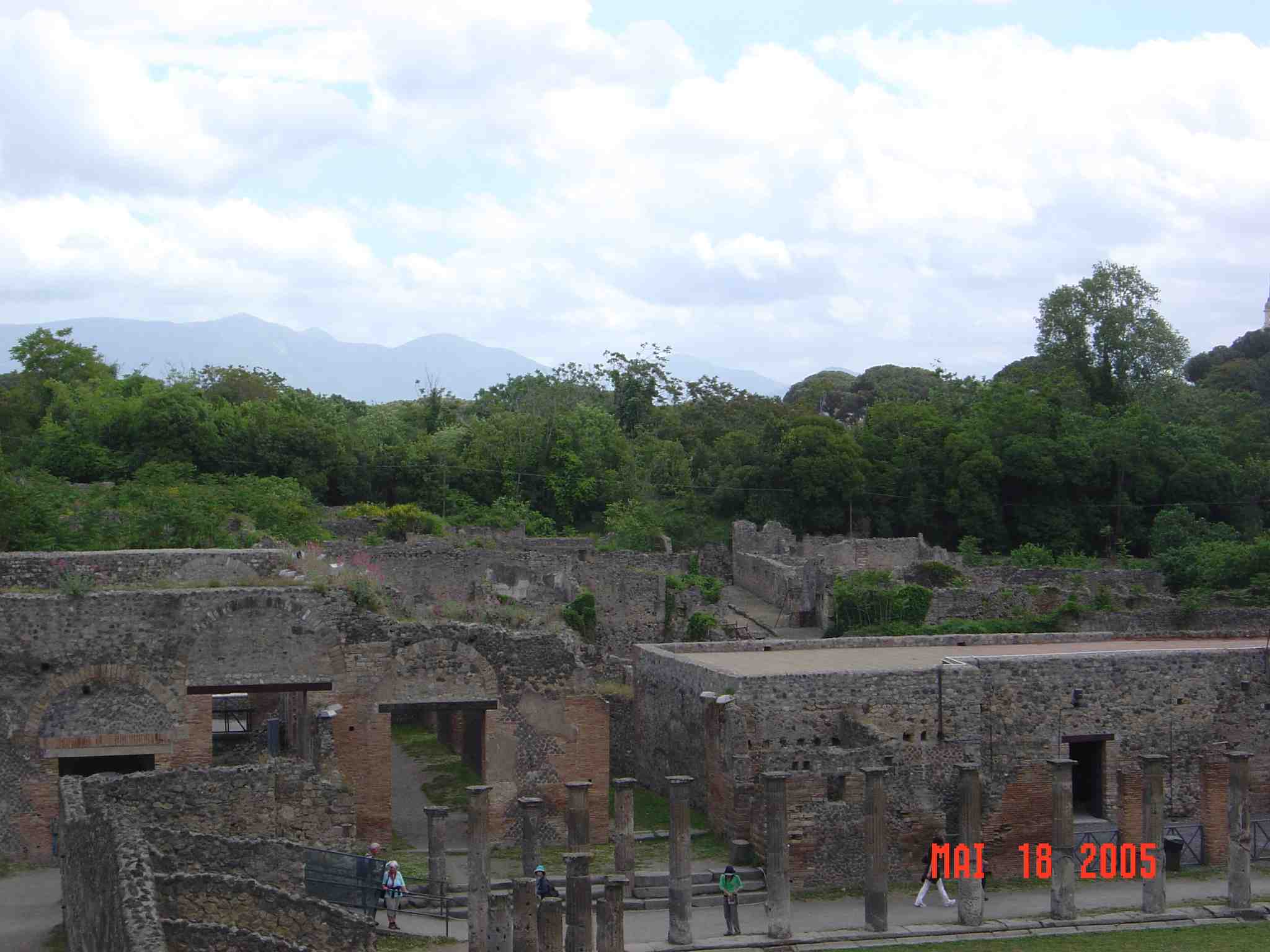 Alte Häuser in Pompeji - Hintergrund Vesuv
