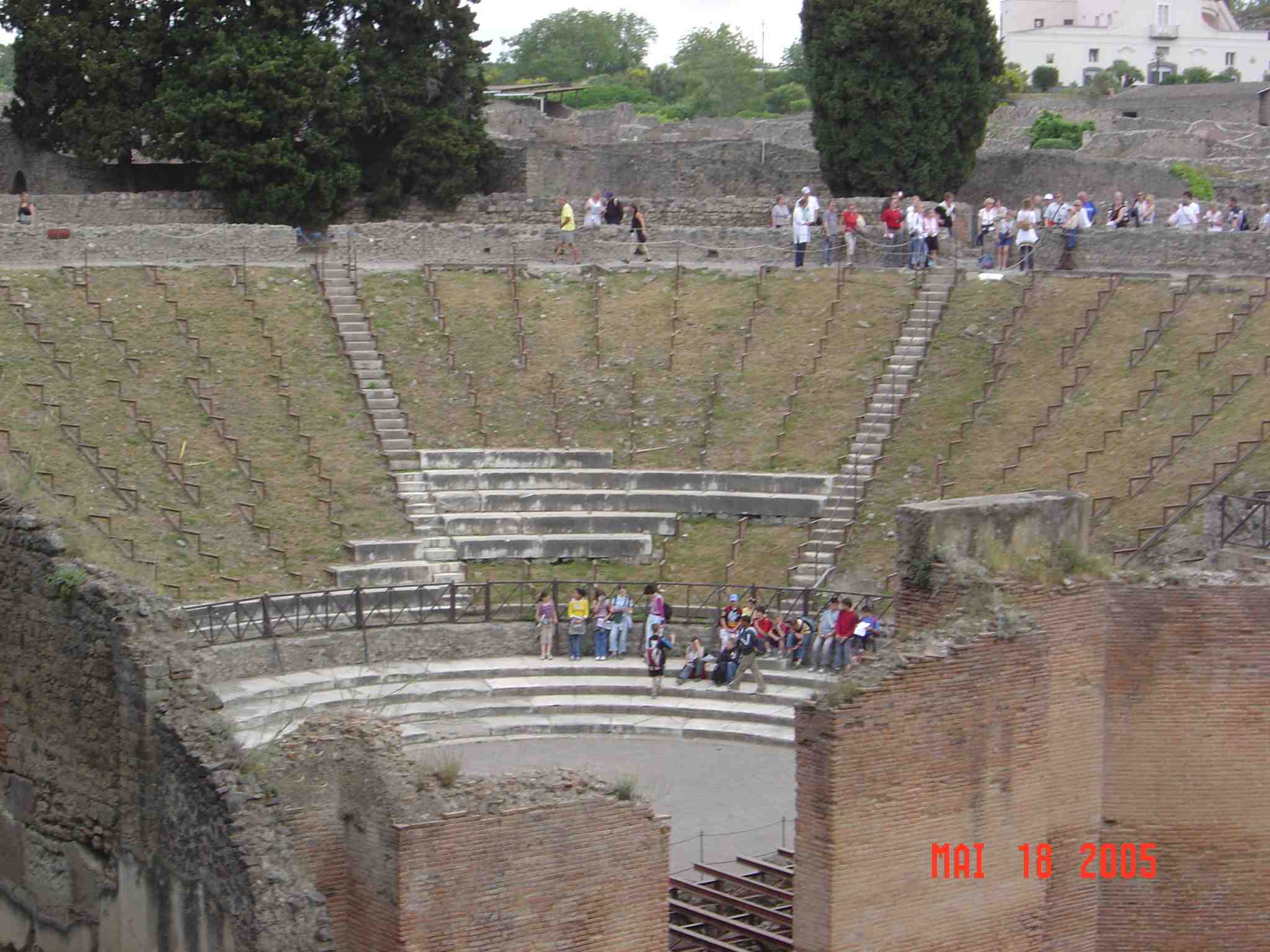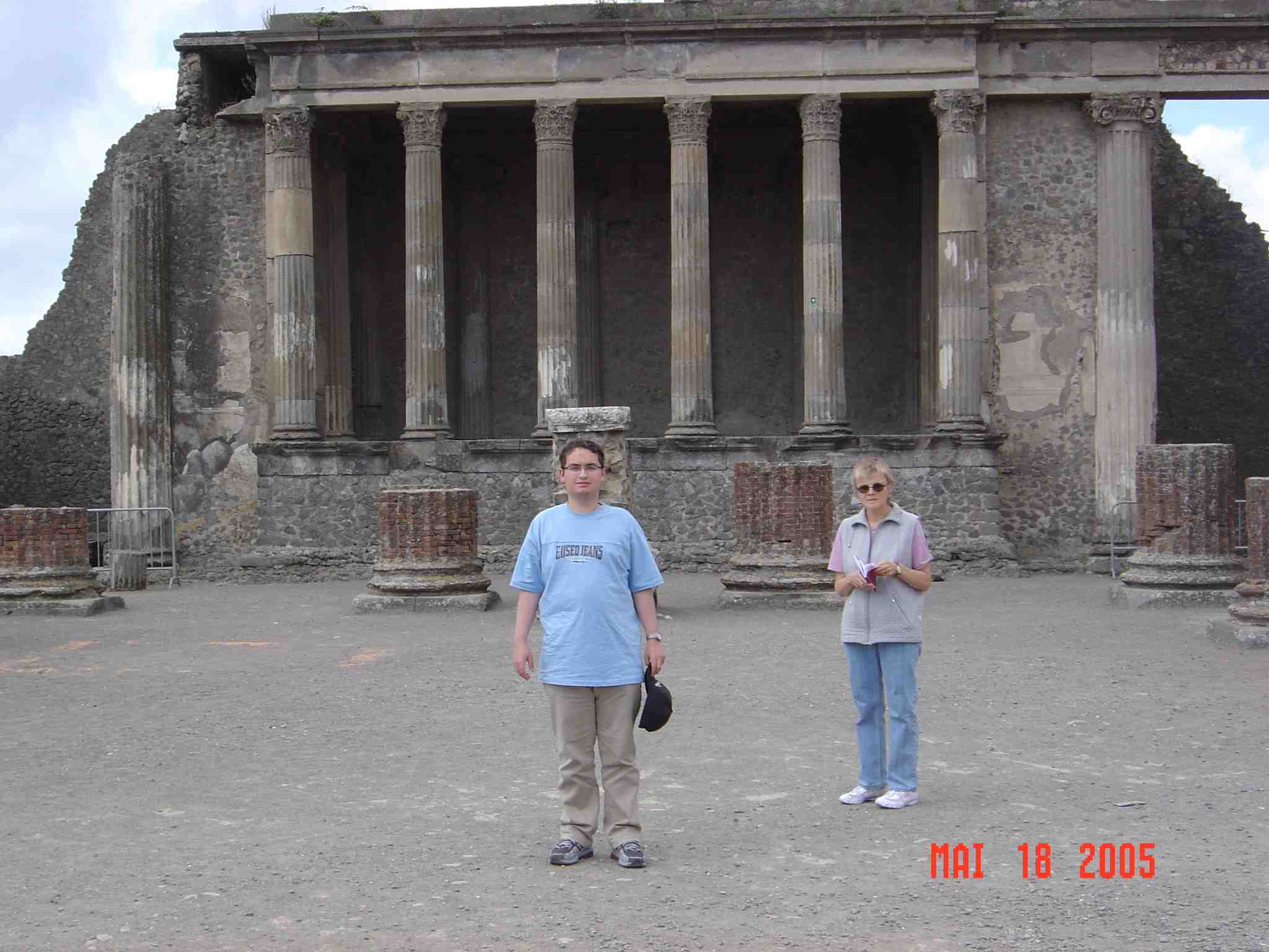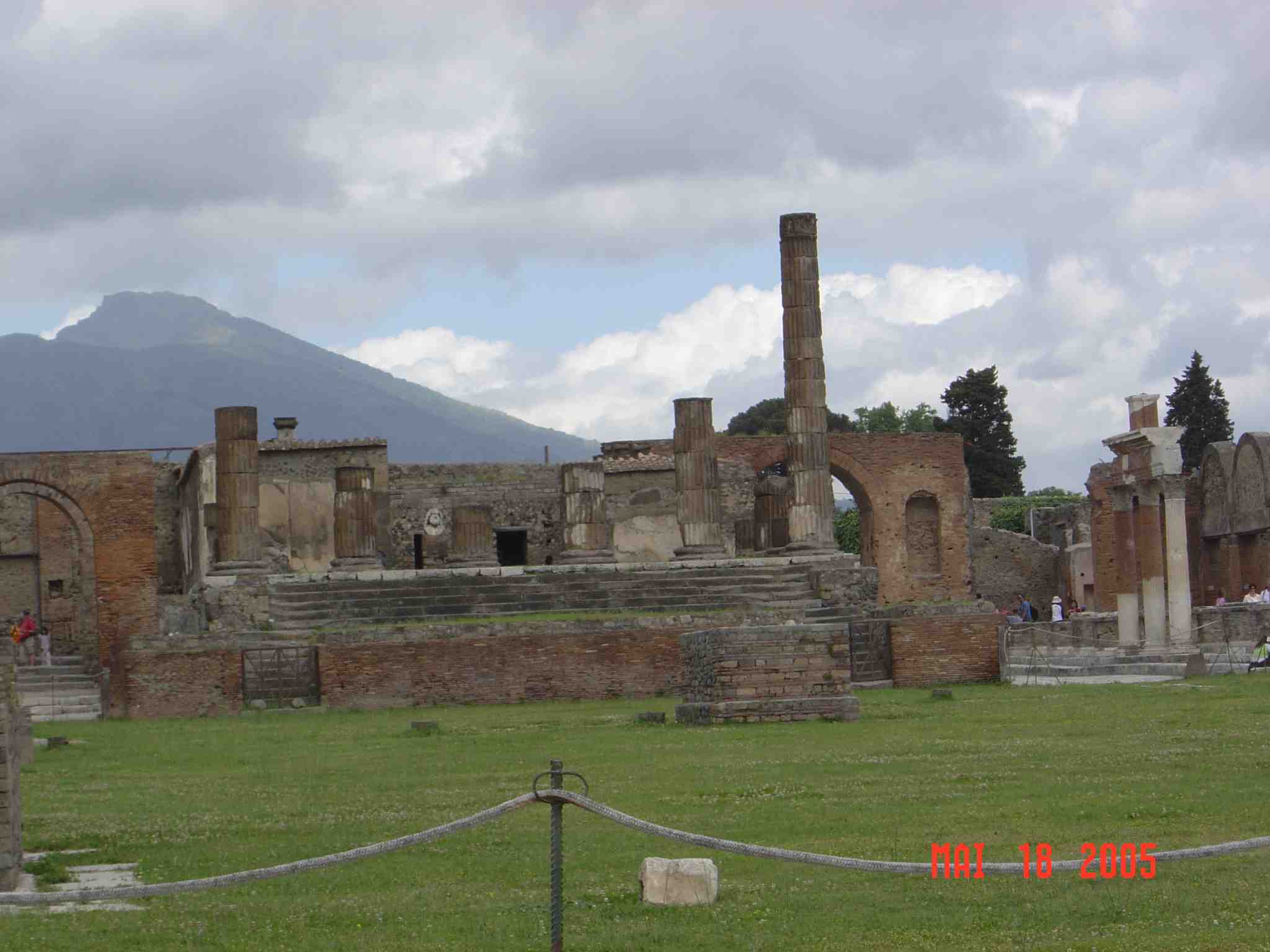 Ausgrabungen in Pompeji; Im Hintergrund der Vesuv