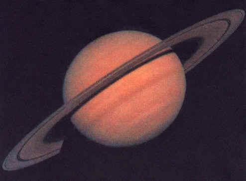 Saturn gehört zu den großen Planeten und ähnelt dem Jupiter. Er ist überwiegend gasförmig und besteht vor allem aus Wasserstoff. Dem entspricht auch seine mittlere Dichte von 0,69 g/cm³, die niedrigste unter devn Planeten. Auch die Atmosphäre besteht vorwiegend aus Wasserstoff, aber mit anderen Beimengungen als sie bei Jupiter zu finden sind. Sehr auffallend ist die Abplattung des Planeten an den Polen, verursacht durch seine rasche Rotation (eine Umdrehung in 10 Stunden, 40 Minuten); der Durchmesser am Äquator beträgt 120.660 km, an den Polen 98.000 km.